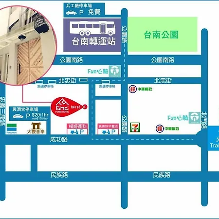Fundi Hotel Tainan z przechowalnią bagażu znajduje się w mieszkaniowej dzielnicy z różnymi sklepami, takimi jak Dom Handlowy Hayashi, w około 1 km. Na terenie całego obiektu zapewniono Wi-Fi.